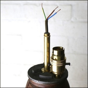 A Bulb holder was wired up and fitted into the lamp part. You will be able to see UK wiring here, which shows Green & Yellow for Earth, Blue for Neutral, and Brown for Live.