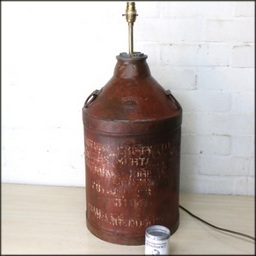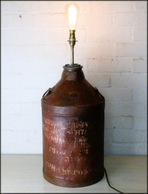In use and with a shade fitted the lamp comes to life, this handsome can lamp would make a great addition to any mancave, or a contemporary space that needs a touch of industrial chic and with its wide round base and stability, the restored vintage petrol can lamp base would make a good lighting option for a large welcome table in a café or restaurant.
